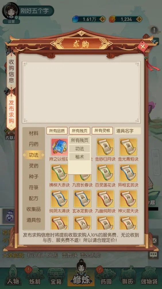 如果不是第一时间进入游戏的玩家,还可以直接跳过卡9层炼丹的步骤,直接原地起飞,从交易行把当前境界所需的丹药给买了就行。