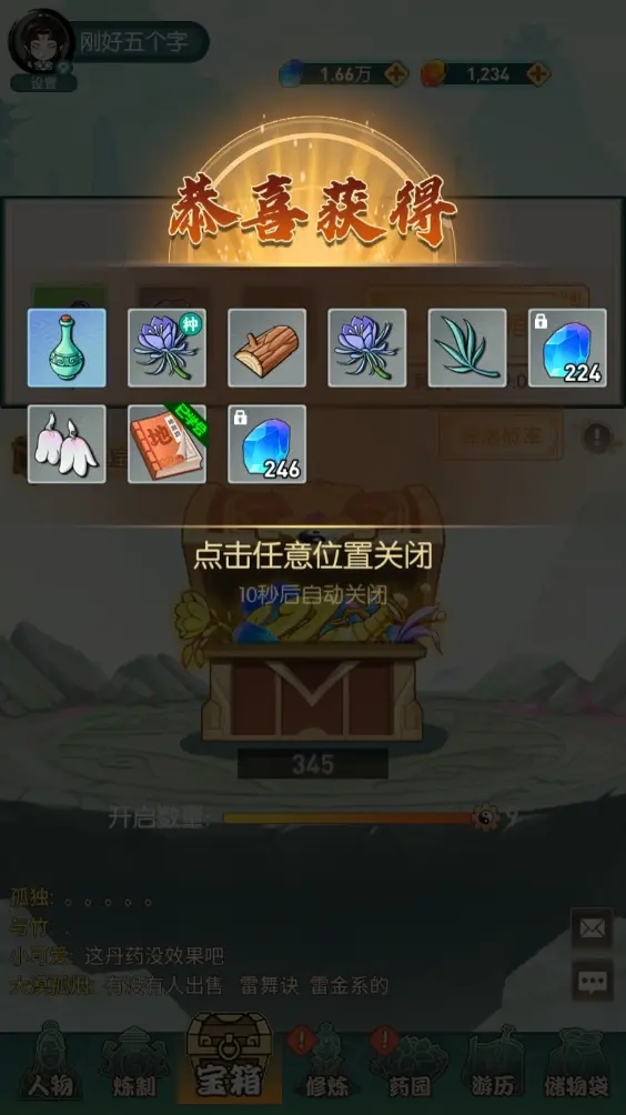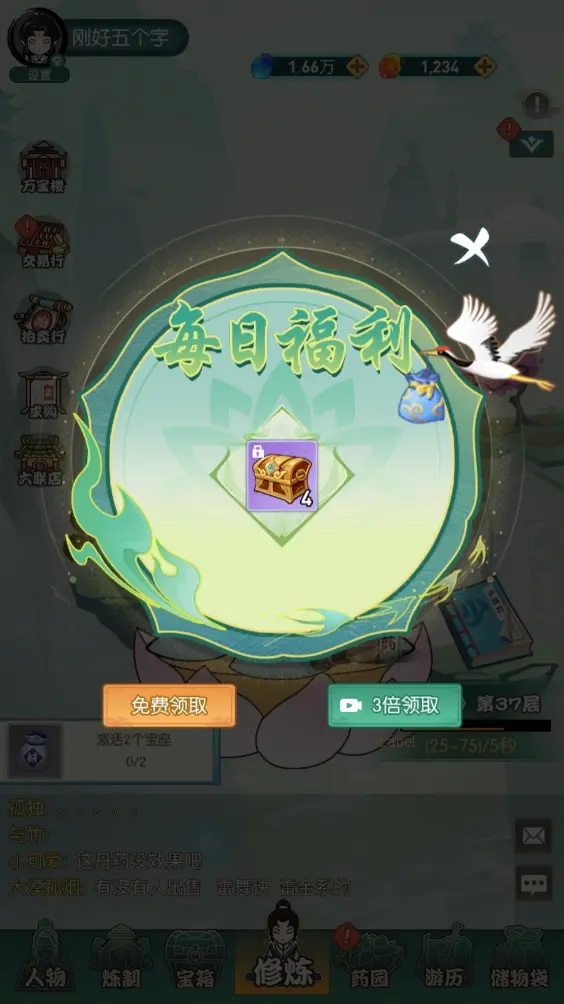炼丹需要草药、草药需要种植、种植需要种子,所以个人建议,筑基前不升宝箱,因为1级宝箱全给的都是种子,因此在筑基前我们可以从1级宝箱里能开出大量的种子,有种子就有丹药,有丹药修炼速度就能起飞。