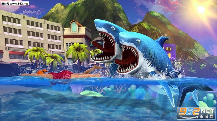 《饥饿的双头鲨安卓版》(Double Head Shark Attack)是一款画面清新的鲨鱼题材的冒险游戏,游戏与饥饿鲨玩法类似,玩家需要控制一条鲨鱼在海底冒险,这里有着众多的海洋生物和游客,玩家需要控制它不断的吞噬补充能量。