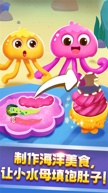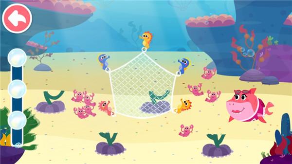 3、在奇妙鲨鱼帮帮队游戏里,帮帮队要寻找失散的水母宝宝、赶跑在神殿捣乱的章鱼、为海马制作虾堡。