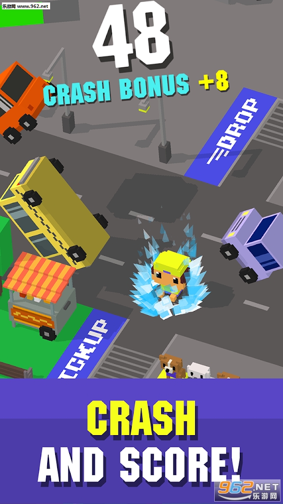 这是送货公司忙碌的一天! 捡起狗和汉堡,然后将它们送到掉落区! 撞上超级英雄的汽车,让他们飞得更好! 使用无人机获取通话时间并更快地交付物品!