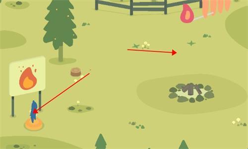 6、走到箭头所指区域,木堆就点燃了,关卡通过。