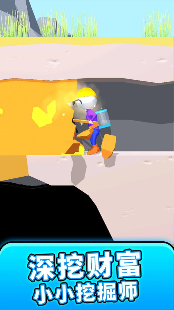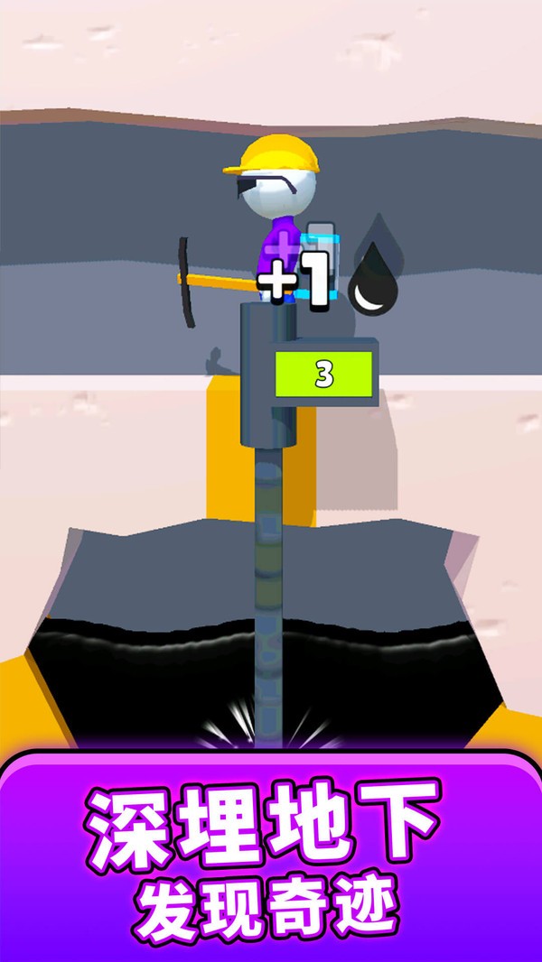 1、控制角色走到洞口,点击开始挖掘,挥镐破除土层,寻找石油、宝石等资源。