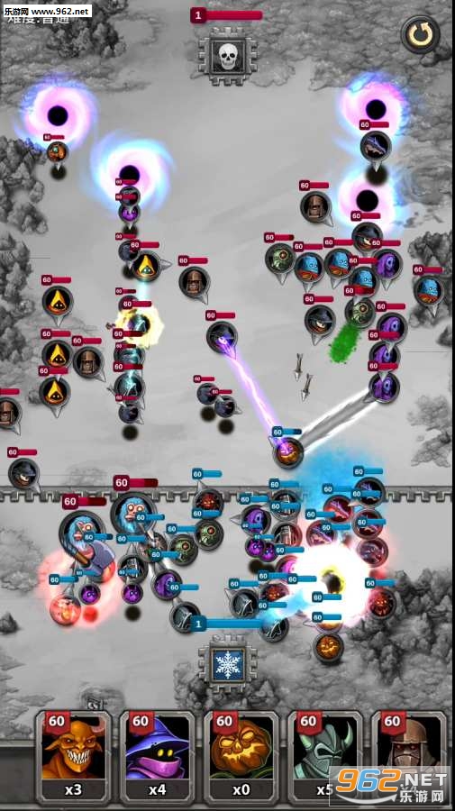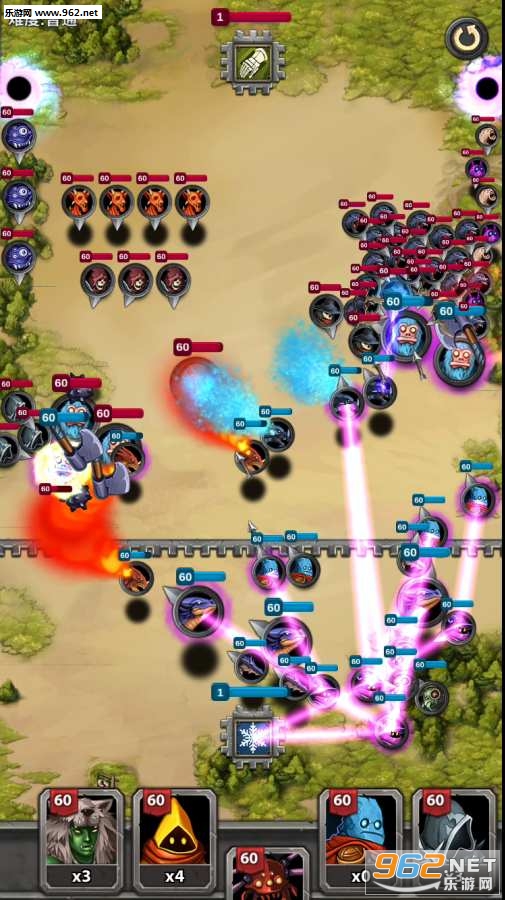 游戏中除了的三角相克(群攻,单体,群体)和远程,近战,地面,飞行等兵种区别外,玩家还能用控场和增益兵种来增大自己的优势。战场中,普通军团为固定阵列(单列,双列,巡逻)和动态出生点(最多两个),不死军团全部都是动态出生点,动态出生点出来的兵种会主动进攻。Boss比一般兵种更强力,但获得收益也更丰厚。Boss定时刷新,顶部的罗盘会提示他的方向和距离。