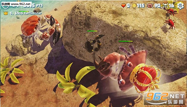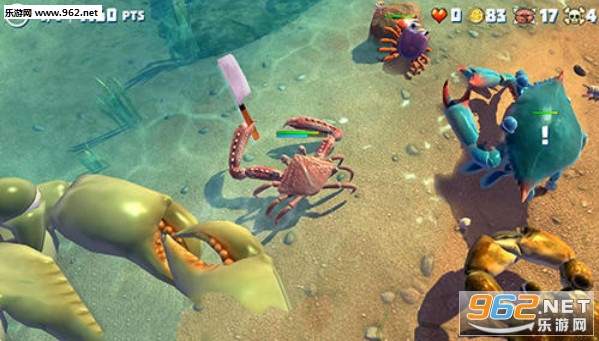 3、跟在线的各种玩家在相同的场地上进行争斗,以打败更多的螃蟹为目标。