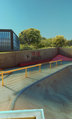 5、一个美丽的滑板公园迷失在包括壁架,楼梯,护栏碾加一碗,半管和四分之一管道。