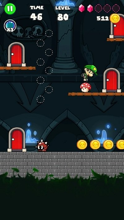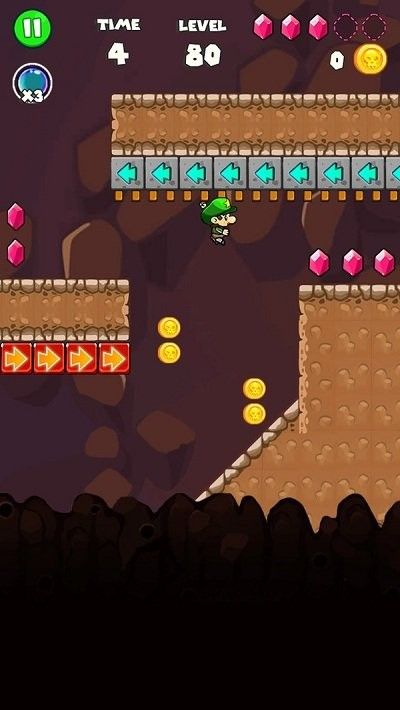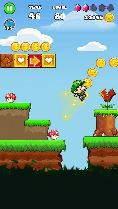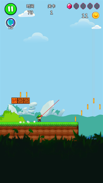 2、游戏中,操控角色在平台上前进,收集金币和钻石,同时注意躲避障碍物和陷阱,利用场景中的方块等元素跳跃到更高位置。