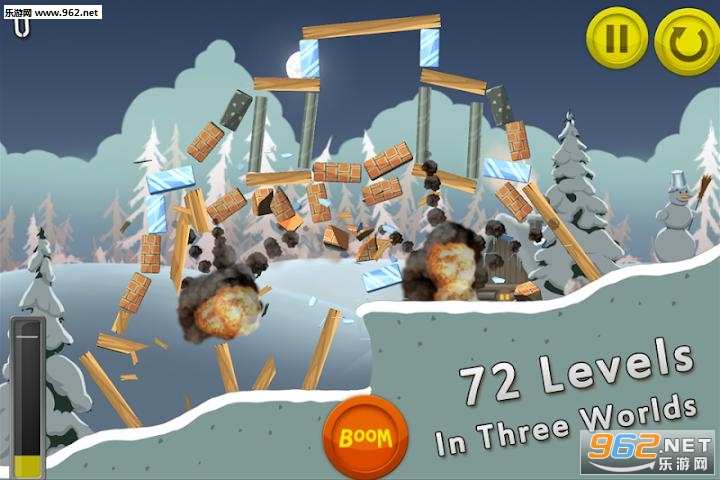 炸弹大陆(Boom Land)是一款利用炸弹来炸毁建筑物的益智休闲类游戏。游戏的建筑结构和《愤怒的小鸟》类似,需要考虑到一些物理知识。游戏中会有炸弹,炸药包,炸药粉末等道具,你需要合理的安放好位置,让炸弹能炸毁建筑物,并且造成的破坏面积更大。游戏关卡众多,值得一玩。