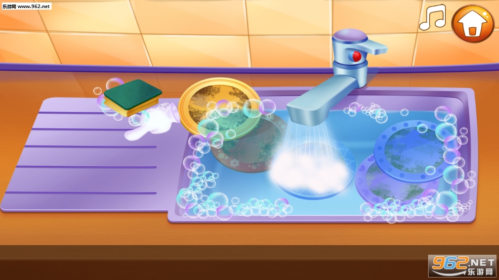 但首先,如果牙齿需要清洁,宠物需要猫粮或水盘或仙女需要一些新衣服,你必须先处理这类事情!现在我们可以从这些游戏的第一级开始。洗净臭水槽的盘子。把一点洗碗肥皂放在海绵里,让派对开始吧!一切都必须干净,闪亮,就像晚餐一样新鲜!干燥一切,让所有的东西整洁地放在厨房里。