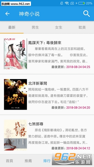 ● 玄幻奇幻、都市职业、武侠仙侠、现代言情、古代言情、架空历史、18大分类榜单随你选!