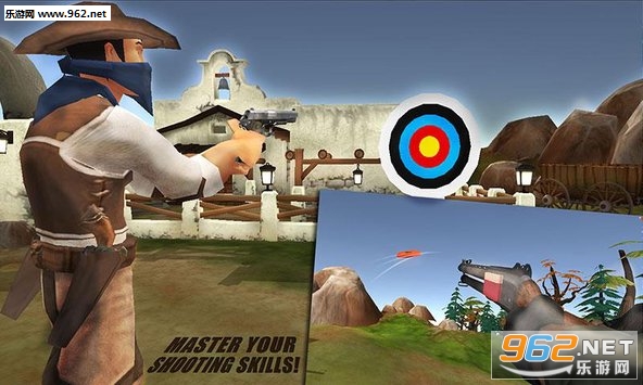 西部牛仔双向飞碟射击是一款3D动作射击游戏,在这里挑战你的胆量,测试你神枪手的技能。和西部边疆的史诗牛仔决斗,对赏金进行追捕。