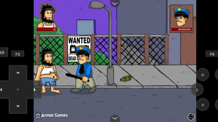 无敌流浪汉3:通缉令游戏中玩家们在这里将跟随这位流浪汉视角来完成这次挑战,游戏内为大家提供了非常多的场景,随机与NPC进行互动即可触发剧情,玩家们通过方向键盘控制角色完成组合连招击败敌人,开启下一关!游戏玩法非常简单,在不断对战中升级变强!成为真正的无敌流浪汉喔!