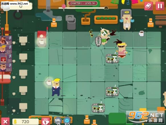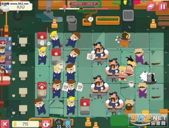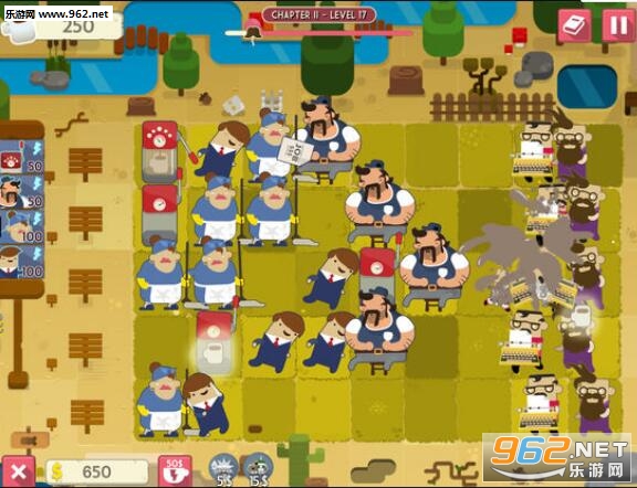 使用你的人力资源代表在赶时髦的人处查看工作申请,简历和大量的纸张!打开咖啡壶给入侵的敌人射击咖啡球,投射时髦的雕像来冻结赶时髦的人,或者设置一个装有时尚太阳镜和热咖啡作为诱饵的Urban Trap。