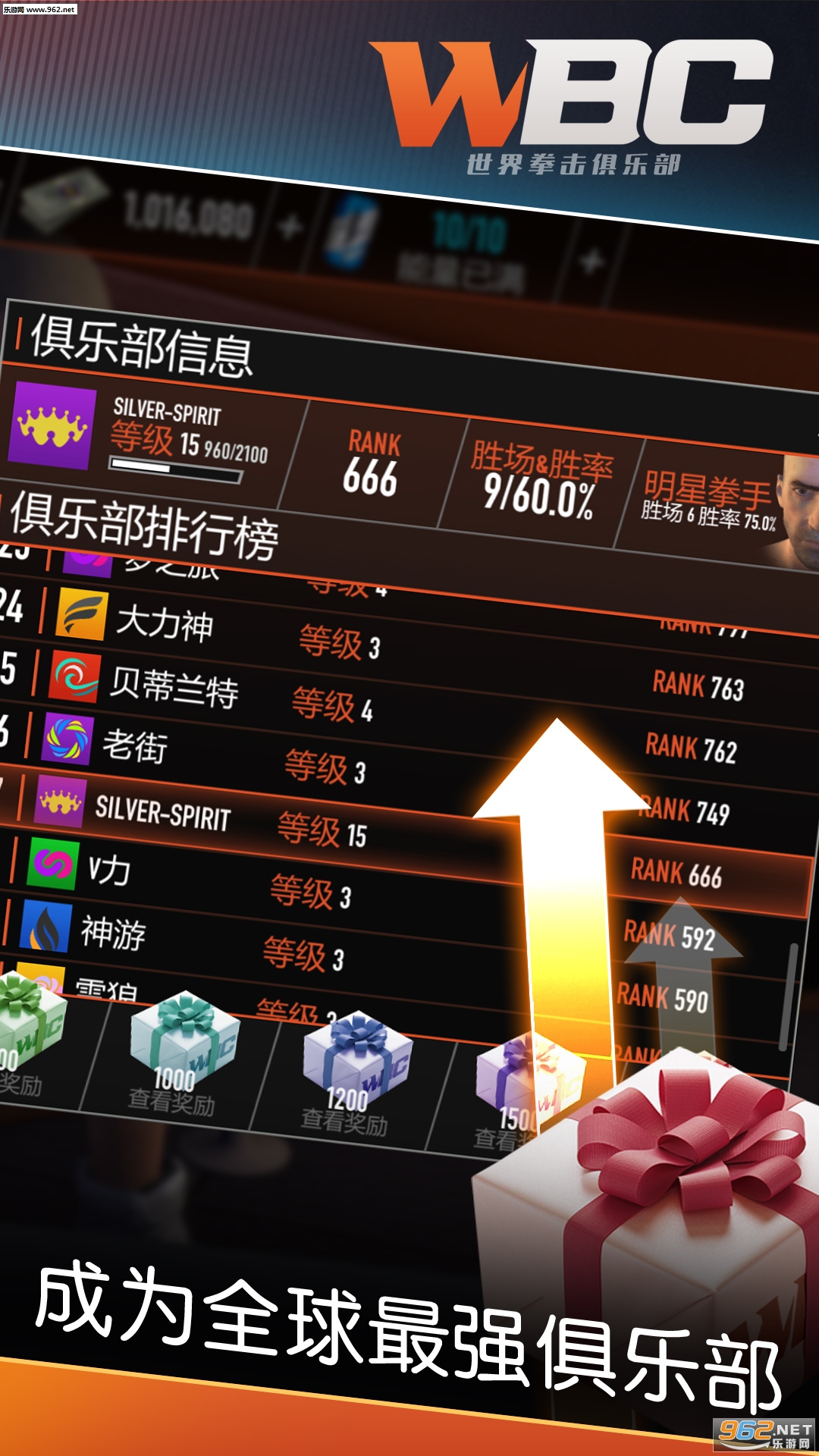 你将会带领你的俱乐部成员挑战全球各色对手,击败他们你将会获得丰厚的奖金和排位分数,当你的排名提升到一定水平还会有更强的拳击高手加入到你的俱乐部里!