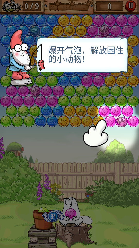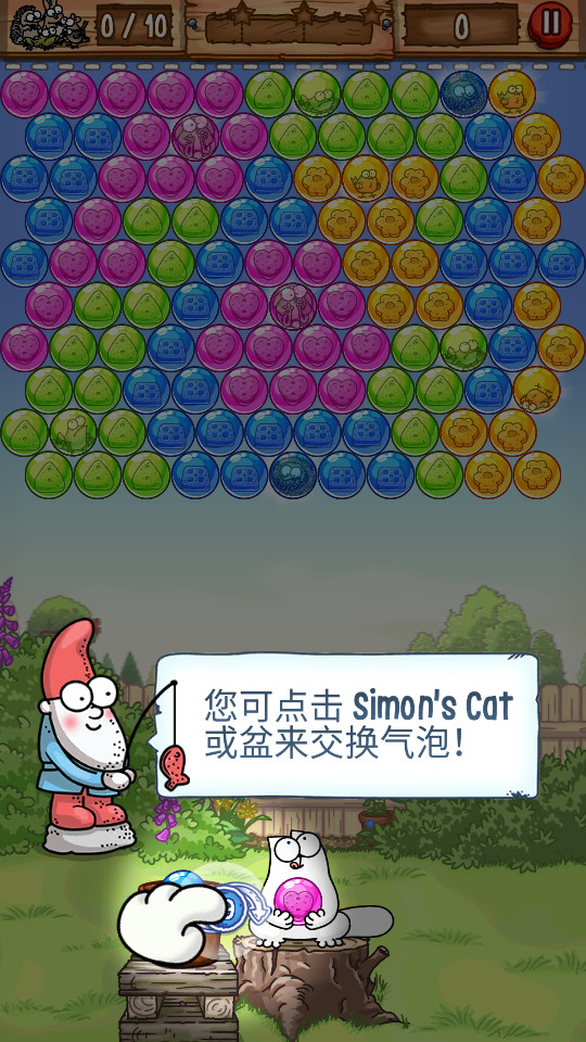《西蒙的猫泡泡时间》是一款基于著名动画西蒙的猫系列改编的泡泡龙消除类游戏。游戏以西蒙的猫及其家族成员为主角,展开一场充满乐趣和挑战的泡泡消除之旅。融入了精彩的故事剧情,玩家可以随着故事的发展进行泡泡消除,解救被困的小动物,体验不同的冒险和挑战。采用经典的泡泡龙玩法,玩家需要发射相同颜色的泡泡进行消除。通过消除泡泡,玩家可以解救被困的小动物,挑战更多的关卡。