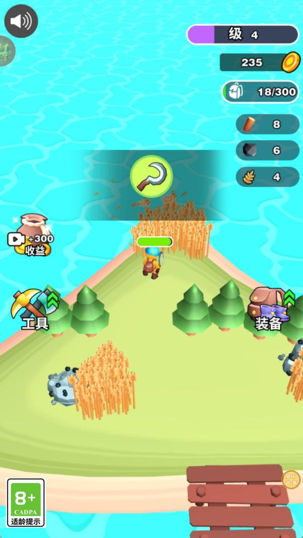 4、专注采集基础资源小麦、木材,快速建简易营地,保障生存与发展。