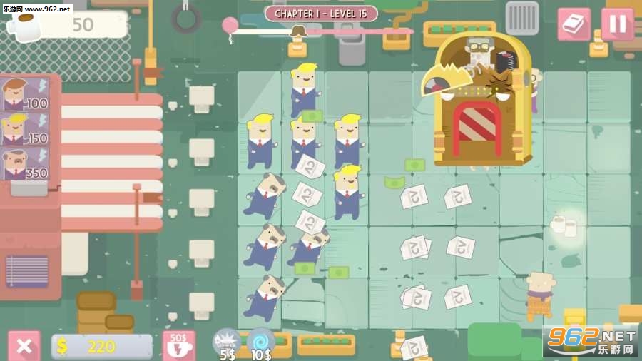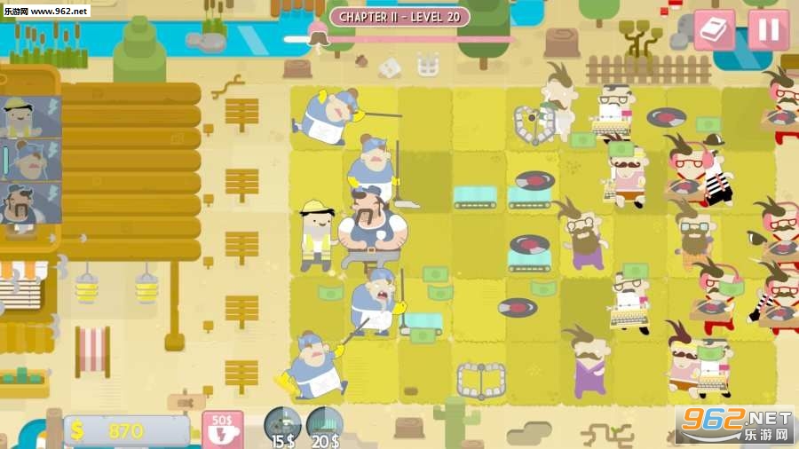 使用你的人力资源代表在赶时髦的人处查看工作申请,简历和大量的纸张!打开咖啡壶给入侵的敌人射击咖啡球,投射时髦的雕像来冻结赶时髦的人,或者设置一个装有时尚太阳镜和热咖啡作为诱饵的Urban Trap。