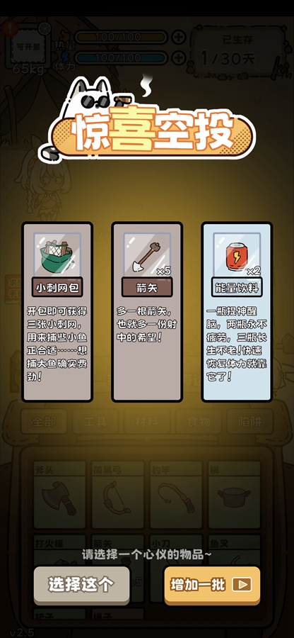 注意:进入游戏时点击广告观看后,后续观看广告可点击热量或体力旁边的加号或者生成一定天数才能继续观看广告