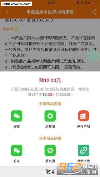 爱买店主分享产品海报之后,有好友在海报购票可直接立刻收到佣金奖励。店主不需要洽谈景区,也不需要去管游客购买后的流程,只要做好自己的社交流量,就可以轻松赚钱。