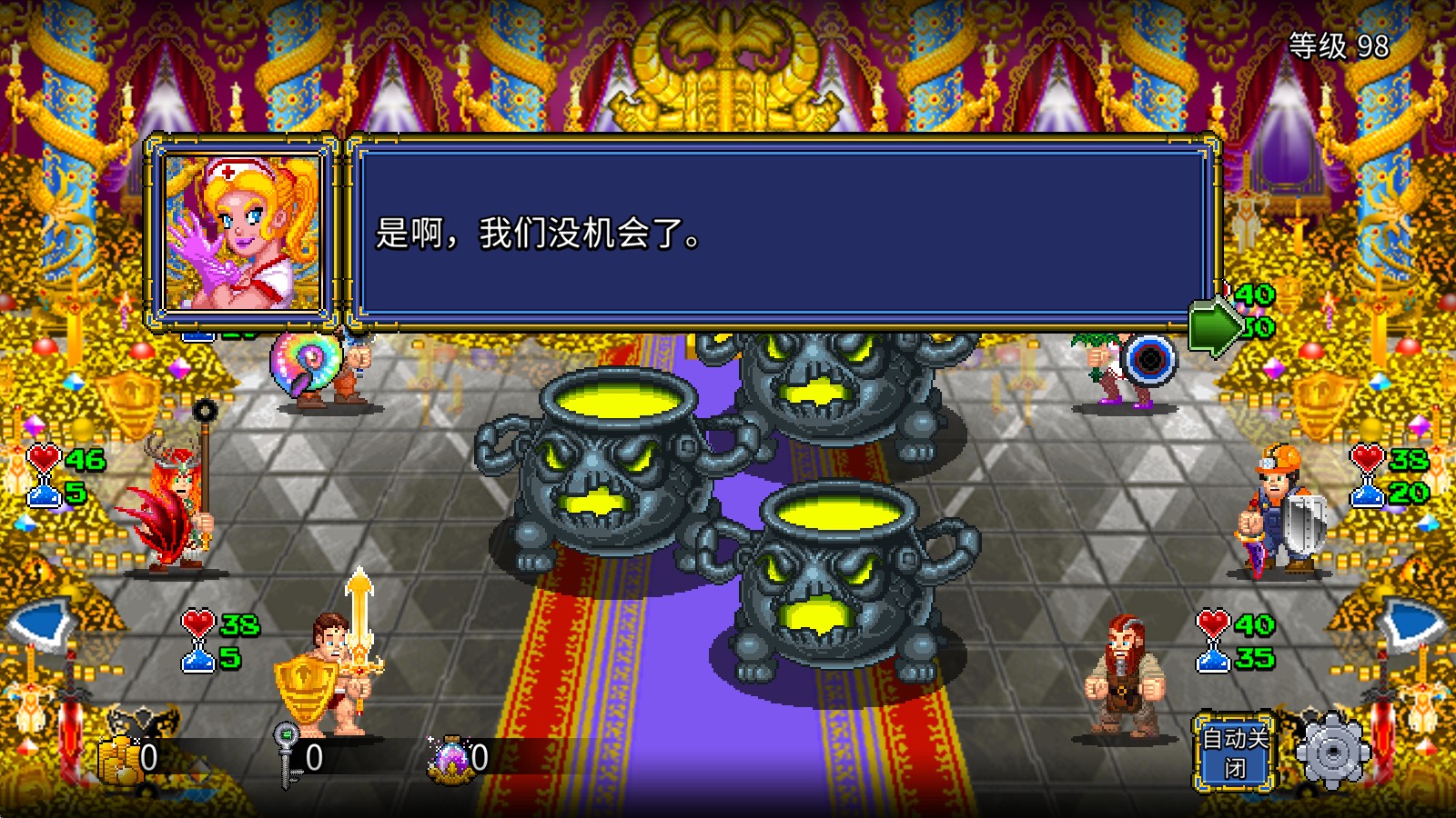 大可不必 -你在酒馆中很安全,只需雇佣一些苏打爱好者替你干那些脏活就好了。用他们带回来的战利品升级你的酒馆,城镇以及军械库,以此吸引更多冒险家,然后再次发起地牢之旅。建立自己的城镇,组建一支强大的队伍,看看你能不能穿过地牢,到达下一个次元以及更多的次元。