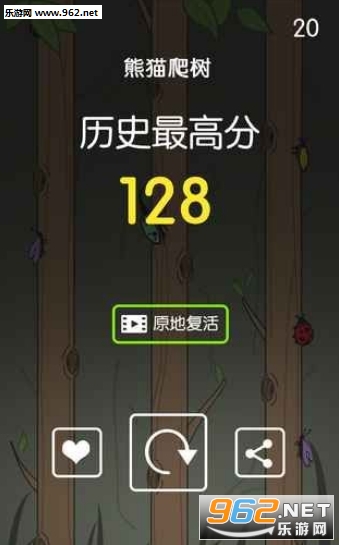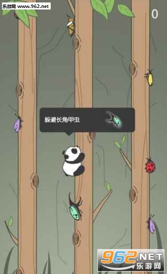 2,游戏界面会有三棵树,你将操控你的小熊猫,在三棵树上跳动,躲避不断涌上来的各种虫子;