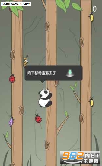1,熊猫会不断地向上爬树,随着游戏进度拉长,虫子会越来越多,碰到虫子就会从树上掉落哦;