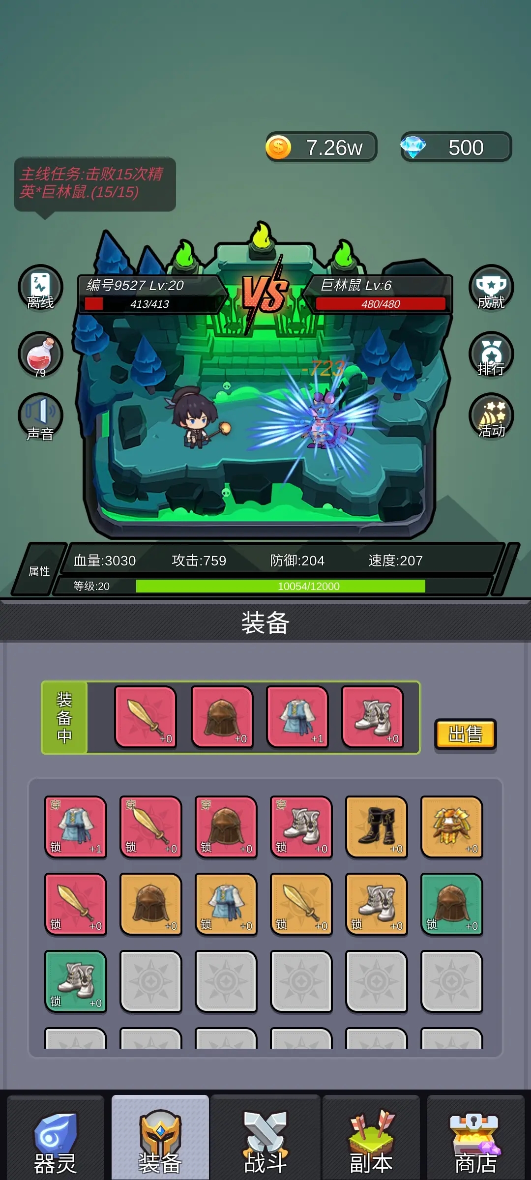 前期装备尽量少强化,我5级、15级装备就只把武器强3,武器强3自带血量5%的回复效果(干死怪物后)