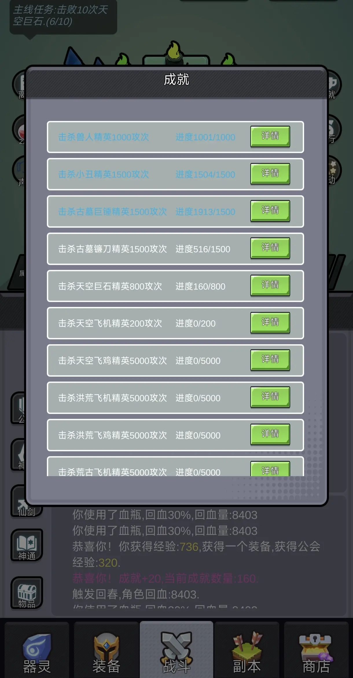 建议:前期1500的成就顺序依次刷完,1500成就每章最终解锁5%回春5000成就能离线就离线,5000、6000成就最终解锁5%经验加成在线刷能离线的后一章攻血