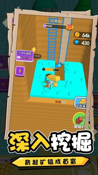 1.你可以享受挖矿的快感,挥动撅头疯狂向下开采,将获得的矿石运走赚取金钱