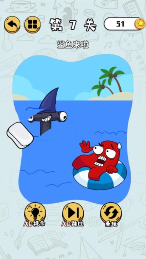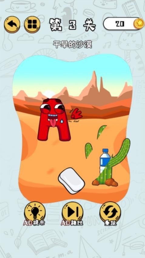 5、每关有特定主题和目标,需依据场景线索和提示,巧用橡皮擦完成解谜,解锁后续关卡。