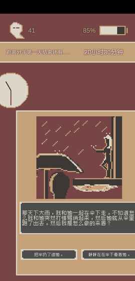 《刚分手的24小时游戏安卓版》是一款以文字剧情玩法为核心的休闲手游,游戏采用经典的像素画风,场景制作的非常有意思,通过模拟一些现实生活中的各种故事处境玩家自己进行选择,选择不同的选项丧值就会产生变化。感兴趣的玩家不妨下载体验一下咯!