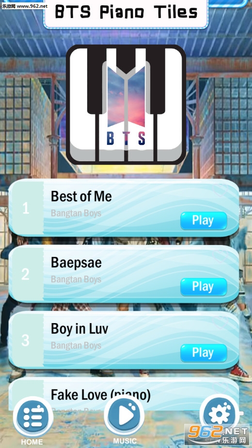《BTS真正的钢琴块安卓版》(BTS Real Piano Tiles)是一款类似别踩白块儿的音乐节奏点击游戏,游戏收录了数十首经典的歌曲,朋友们可以选择一首进行挑战,会有着音乐块不但的向下移动,玩家需要快速的点击或者长按,演奏出动听的音乐。