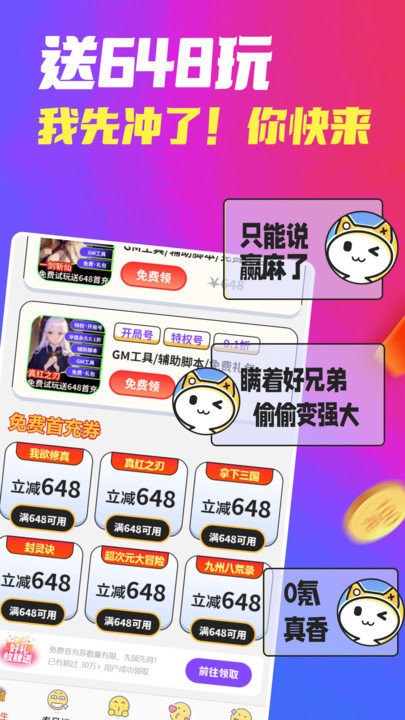 1、游戏礼包,首充折扣,统统免费去领取,尽享更多福利玩游戏。