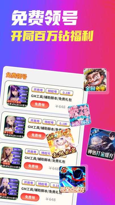 5、免费领号操作都是简单无比,开局就可以去获取百万钻福利;