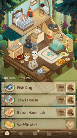 4、游戏主要就是一款模拟养成类的游戏,玩家通过不断地建设自己的小屋来增加自己能够遇到的猫咪的种类和个数,不断地丰富自己的游戏体验。