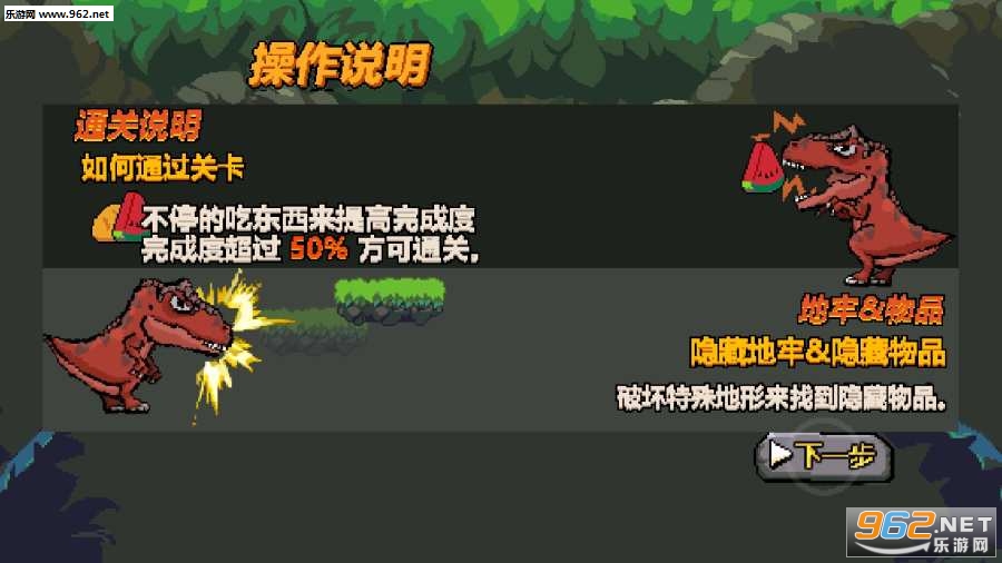 彩色像素风横版动作冒险手游,游戏中你将扮演一只霸王龙,踏上寻找被翼龙偷走的恐龙蛋的冒险之旅,紧张刺激的冒险等你来加入!