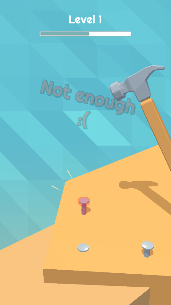 工匠大师是一款非常有趣的轻松休闲益智类游戏,在这款游戏中玩家将会拥有一只锤子,玩家需要做的只有不停地按下锤子,将钉子锤进去,但是一定要注意力度,力度不能太大也不能太小。游戏画面简洁明了,游戏玩法简单,玩家们都可以轻易上手游戏。感兴趣的玩家一定不要错过了,快来本站下载体验吧!