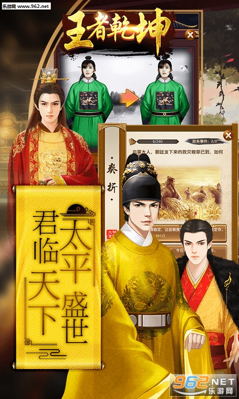 《王者乾坤》是一款以官斗养成玩法为主的RPG手机游戏,中国风的宫廷场景,多途径可快速升迁,江山美人尽在掌中,还能结婚生子,强强联姻,打造最强官场势力,招兵买马,富可敌国!从小官开局到一手遮天,烧脑官斗,震撼开启!中栩栩如生宫廷的画风,真实领略官爷日常。视听玩全方位让您亲身感受一把刻骨铭心的古风生活。告别无趣的刷怪升级,来一场明争暗斗的官场争斗!健全的官职升迁系统,体验青云直上的快感!红颜环绕养成系统,既爱江山也爱美人。你,还能坐怀不乱吗?
