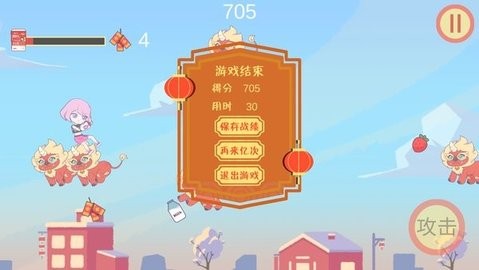 点击屏幕即可开火,游戏的目的,消除所有年兽。