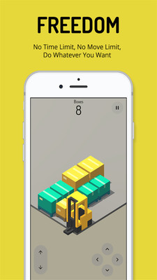 玩法上很简单,在每一个关卡中,将所有的方块用叉车堆叠起来即可,没有时间的限制,玩家可以慢慢的考虑,即时没有激情的游戏过程,但是本作依然是一款不错的休闲游戏,感兴趣的亲赶紧下载吧。