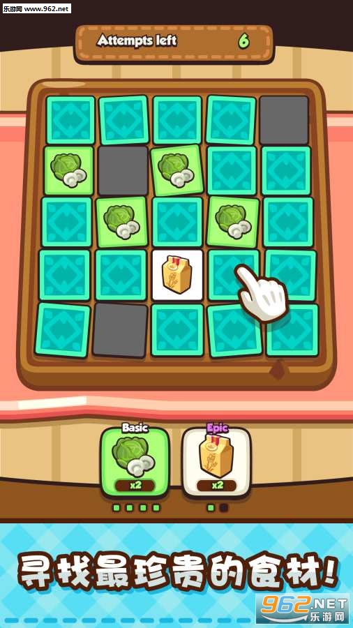 尝试翻转卡牌并找出所有隐藏的食材,找出最顶级食材助你研发更多美食!