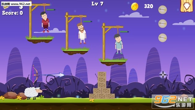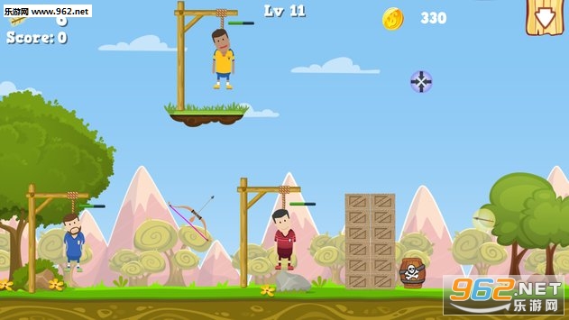 你是神射手,所以得到你的弓箭并保存刽子手。使用你的弓箭保存刽子手挂在绳子上。在小小的刽子手健康状况下降之前切断绳子。使用射箭技能完成棘手的水平。