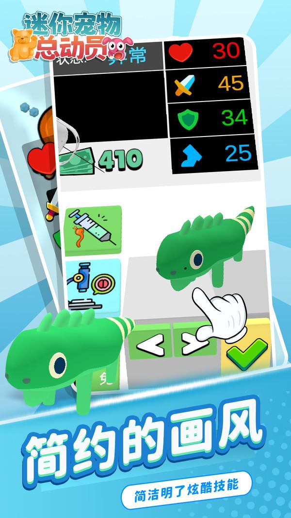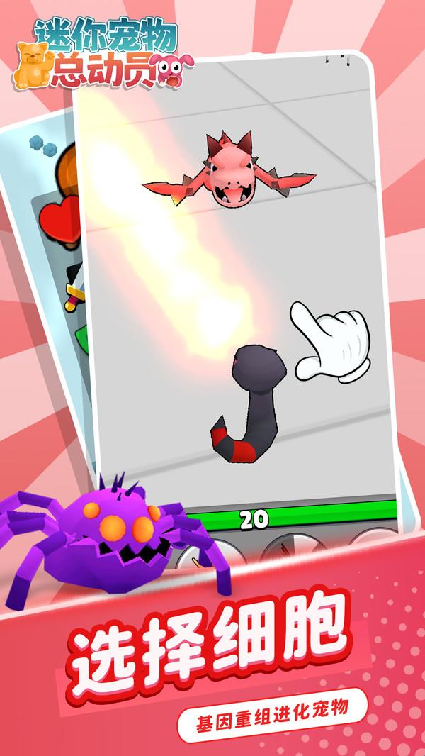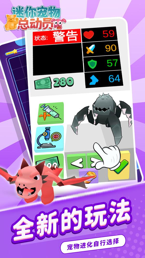 迷你宠物总动员中的宠物种类十分丰富,玩家们不仅可以从各种宠物蛋中开出属于自己的小宠物,还可以通过寻找合适的细菌为宠物们进行注射来提升它们的技能和属性,多种不同的进化路线可以任你选择,每一次进化之后你的宠物就变得个更加厉害,并帮助你在接下来的关卡中获取更多的优势,还可以与你的宠物们进行各种温馨有趣的互动哟。