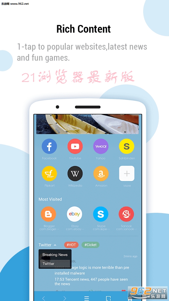 21手机和平板电脑的浏览器设计,为您带来惊人的高级网络体验。