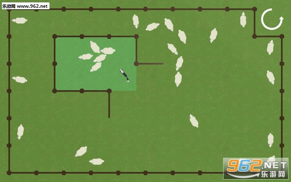 2、简单的玩法,游戏模拟牧羊犬牧羊的过程,滑动起来让狗狗动起来将绵羊全部赶回栏;