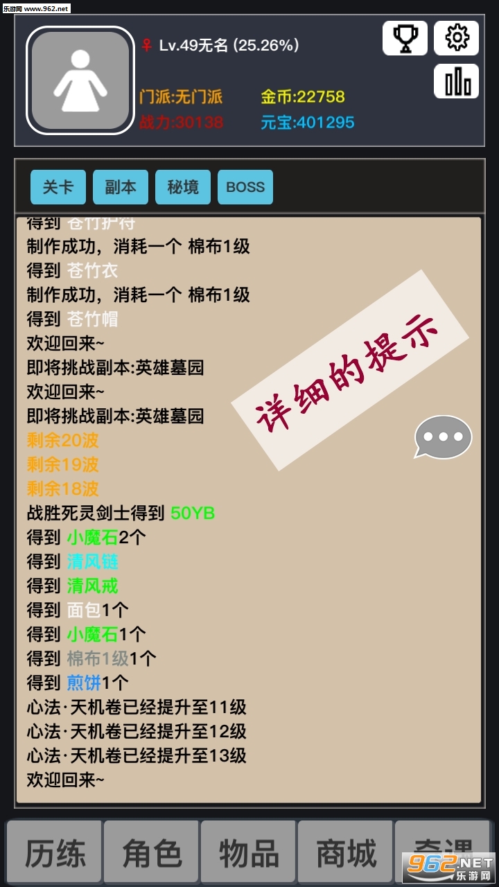 独特的文字挂机玩法