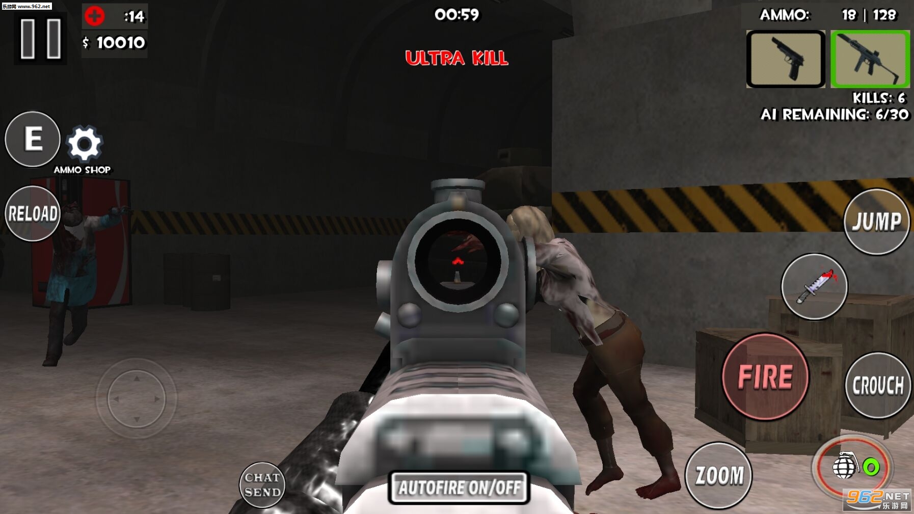 这是我很久都没玩过如此恐怖的射击游戏了。这画质都能作为一款不错的手游类,可惜的是这游戏没有中文,我不知道在游戏中怎么购买子弹和药品的补给,靠着技术支撑了近三分钟,还是抵不过这群丧尸们的袭击。游戏第一视觉,所以看到丧尸扑上来的一瞬间,千万别吓得扔掉手机。