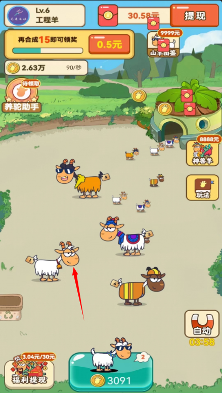我们进入游戏后通过不断的进行合成,有一定的几率羊驼发生变异,就能随机获得稀有羊驼,其中就有绅士羊驼。