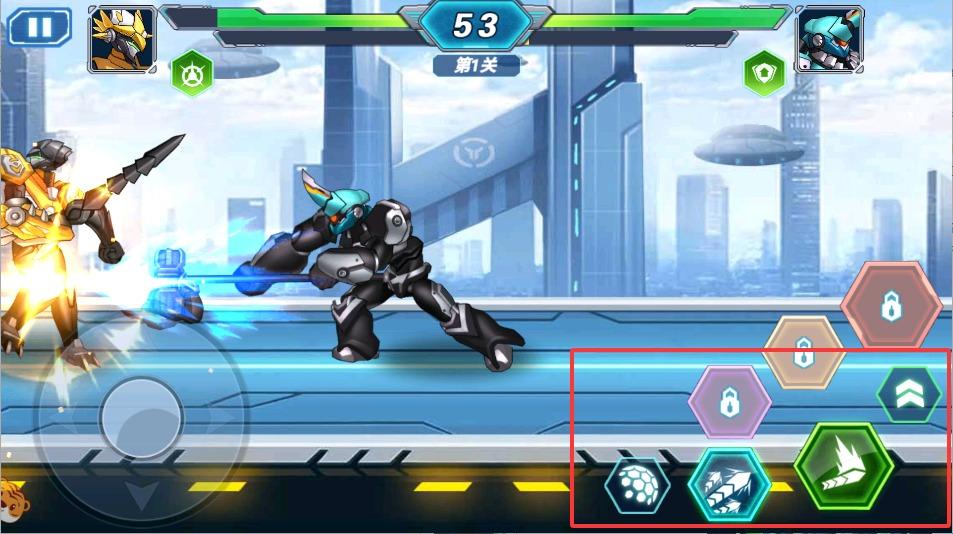 2、右侧按键负责跳跃与攻击功能,把握时机腾空躲避地面伤害,同时发动攻势削弱对手血量。