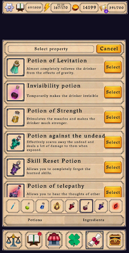 2、这些是一些记录,其中包含了玩家所知道的所有成分及其性质,玩家可以看到玩家所知道的所有成分的性质,并决定未来的必要药水。
